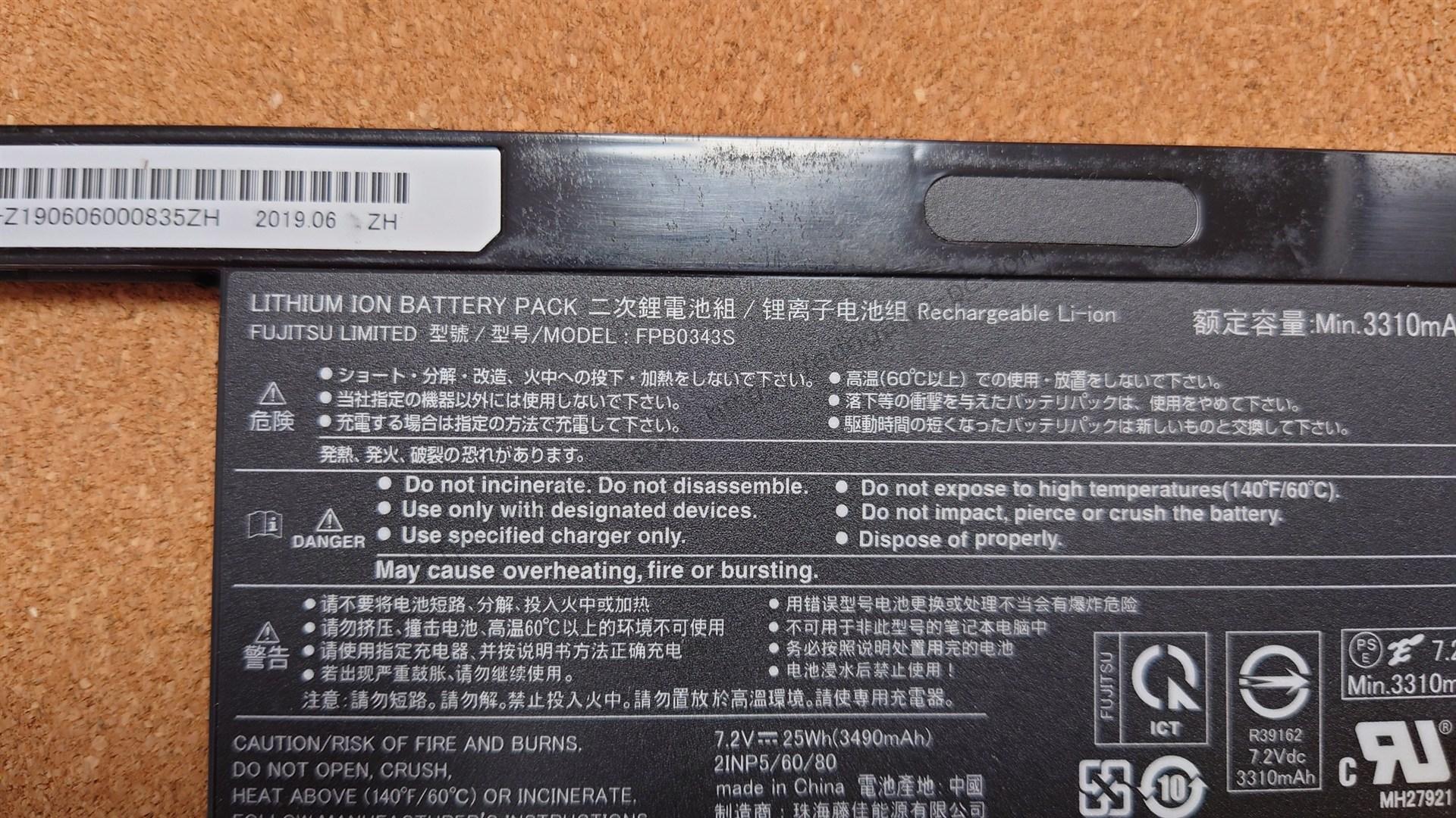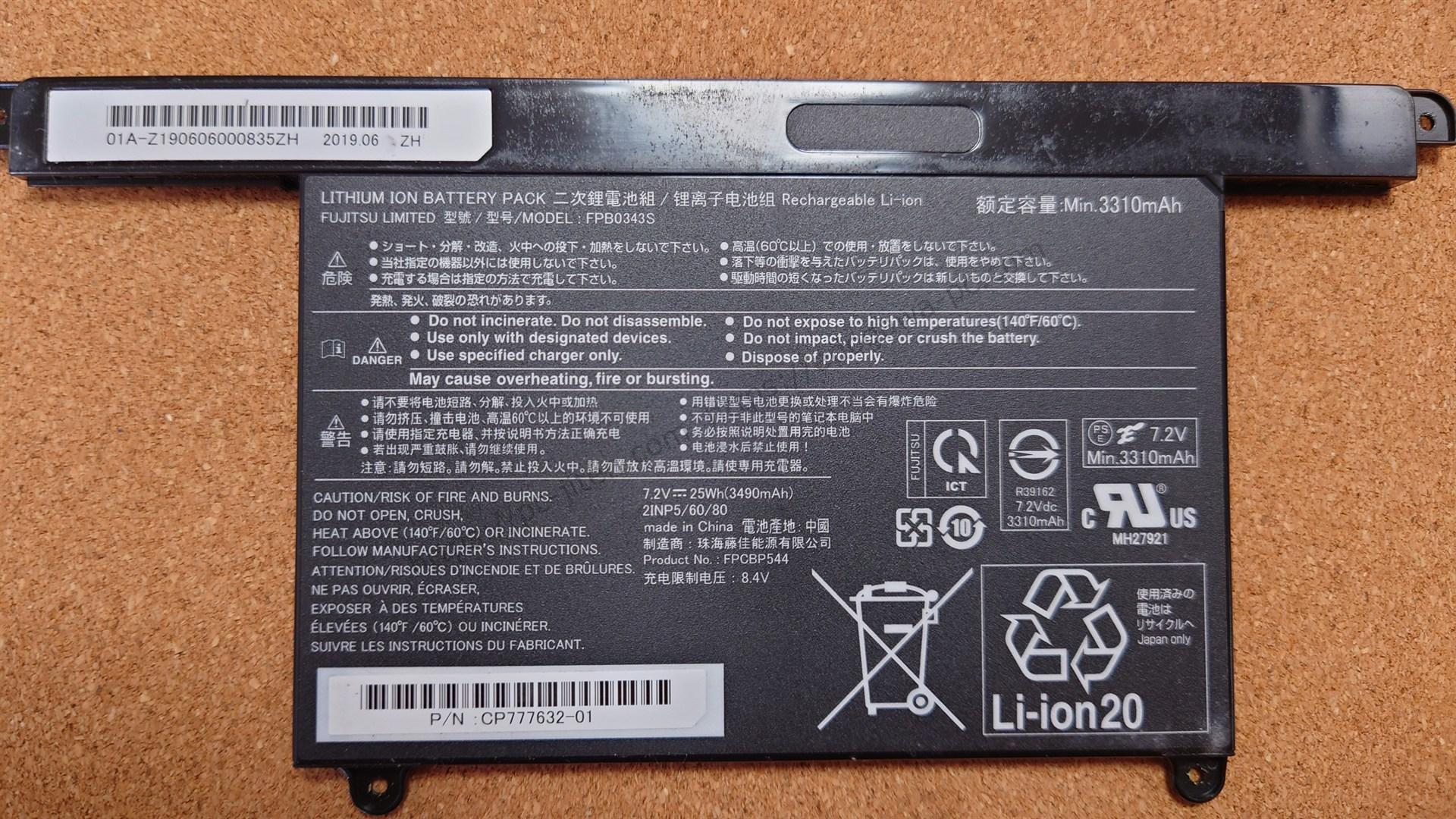 表の写真|Fujitsu Lifebook UH75/D2 バッテリー|FPB0343S / FPCBP544 / CP777632-02