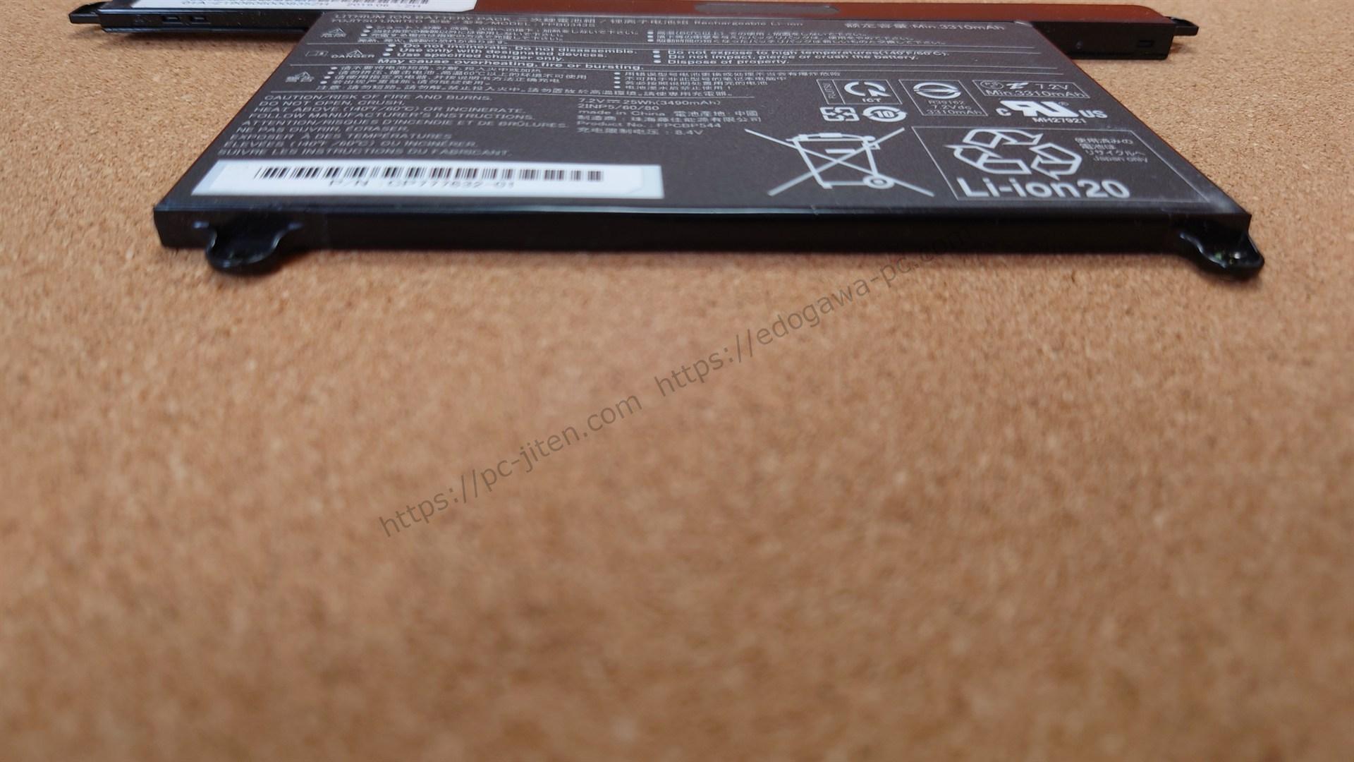 Fujitsu Lifebook UH75/D2 に搭載されていた バッテリー の実物写真